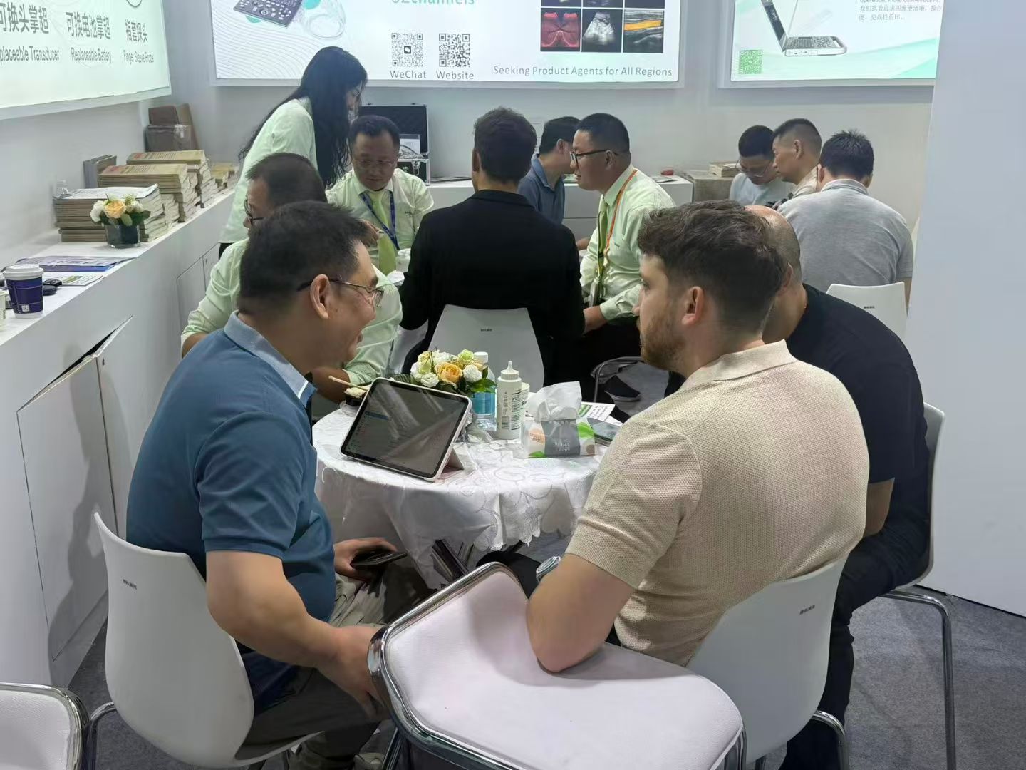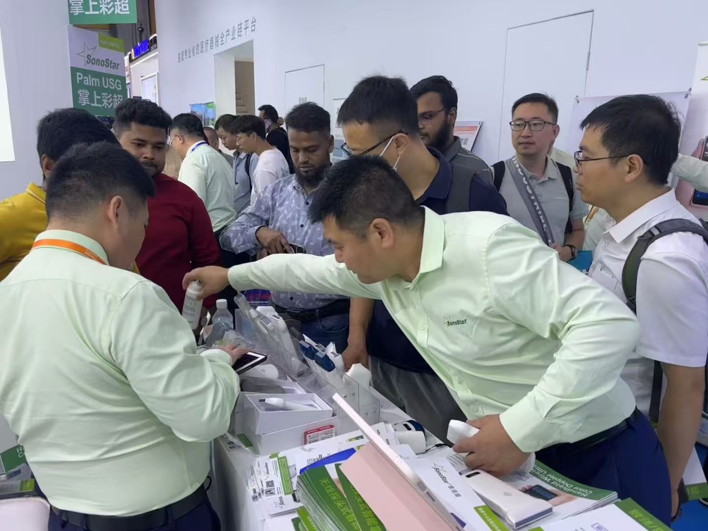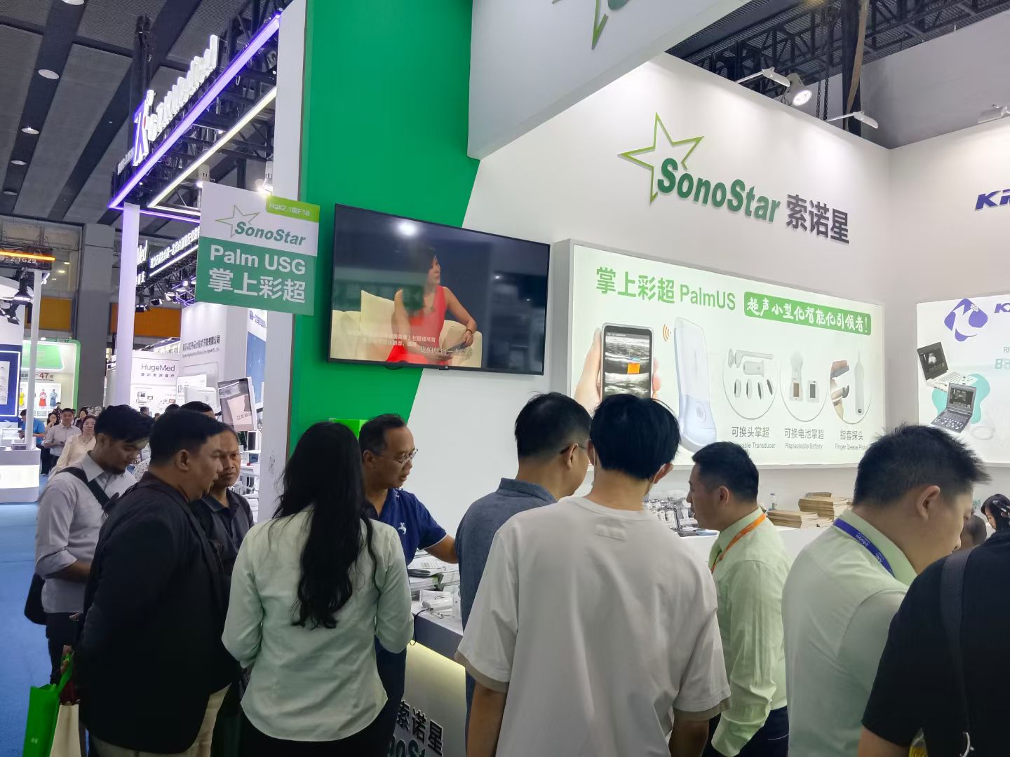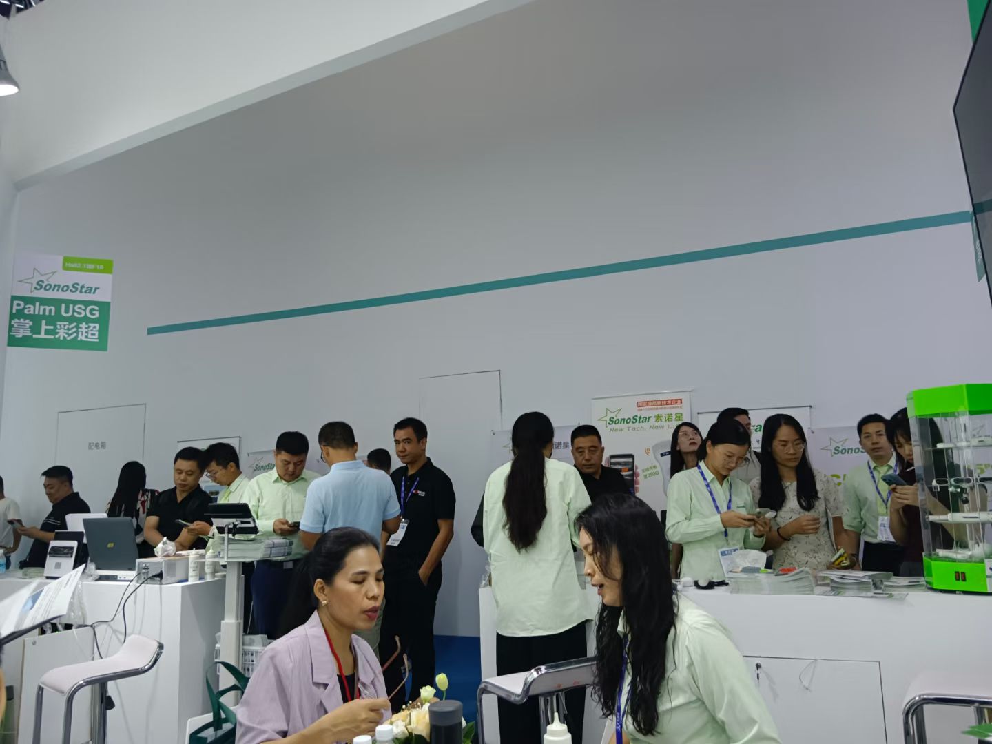 2025年秋季医博会,虽然展会规模没以往大,但索诺星SonoStar的展位还是依旧热闹非凡,一直挤满了人,琳琅满目的新产品也让客户们叹为观止,现场也有十几个客户买了样机