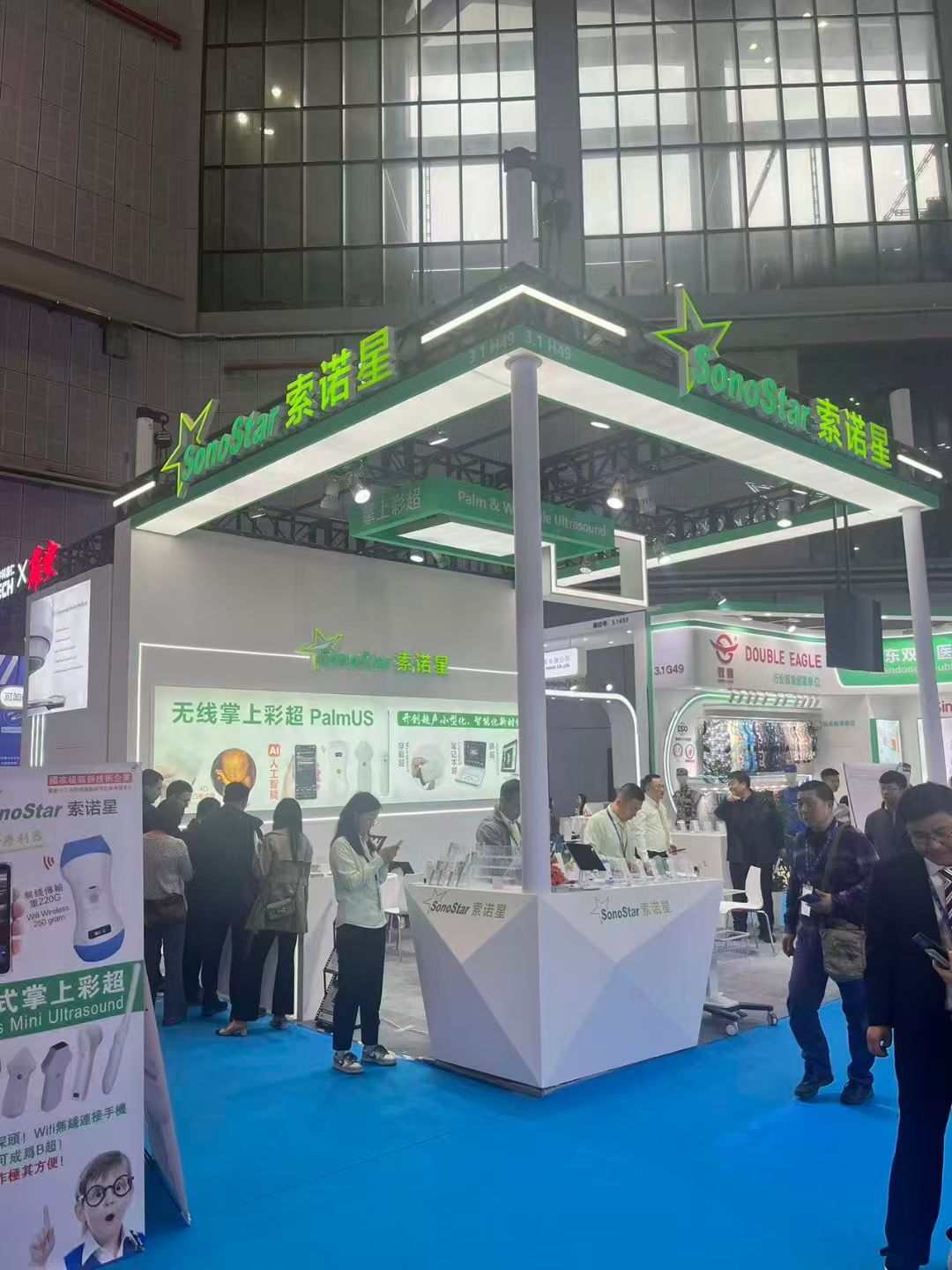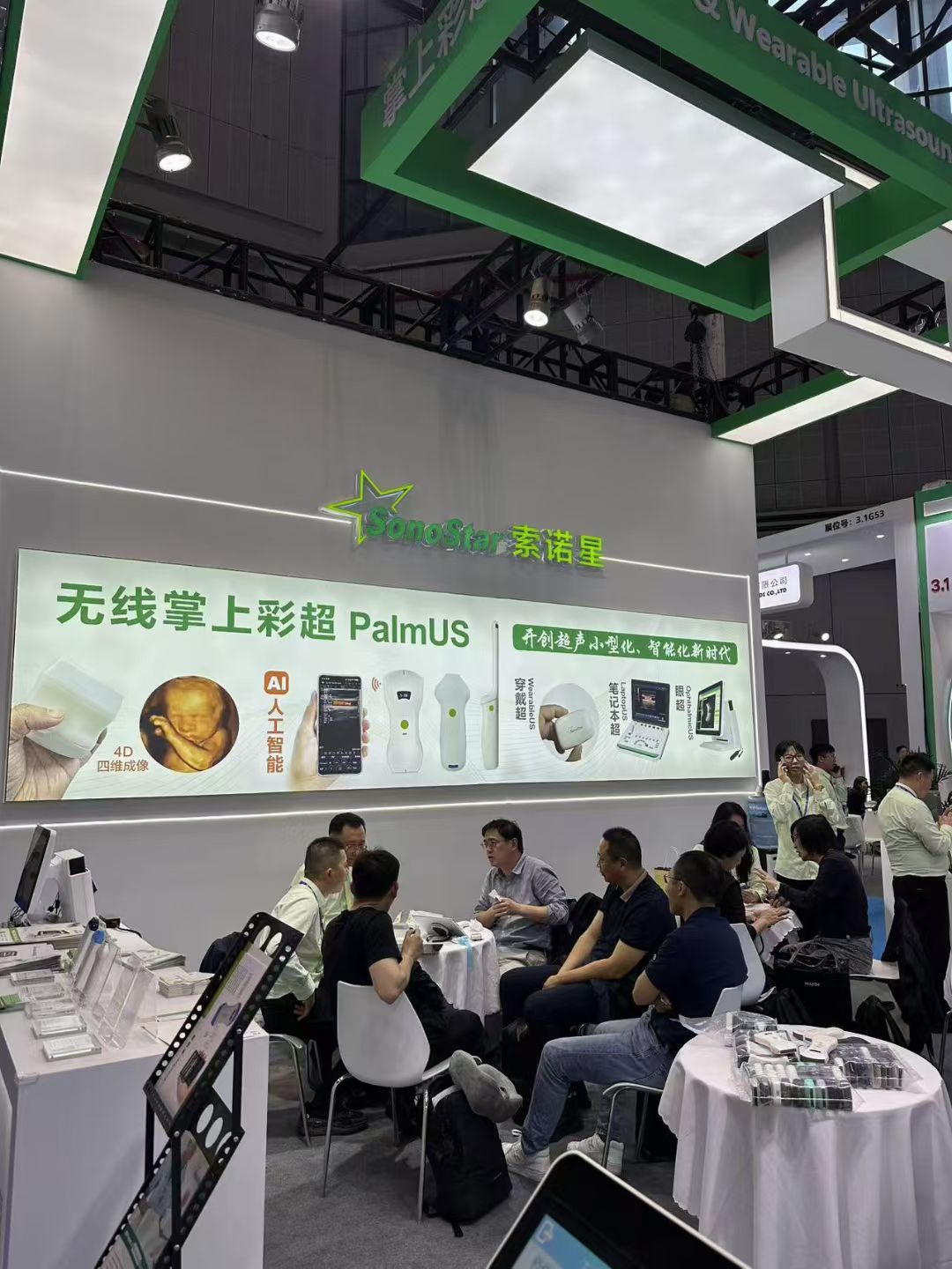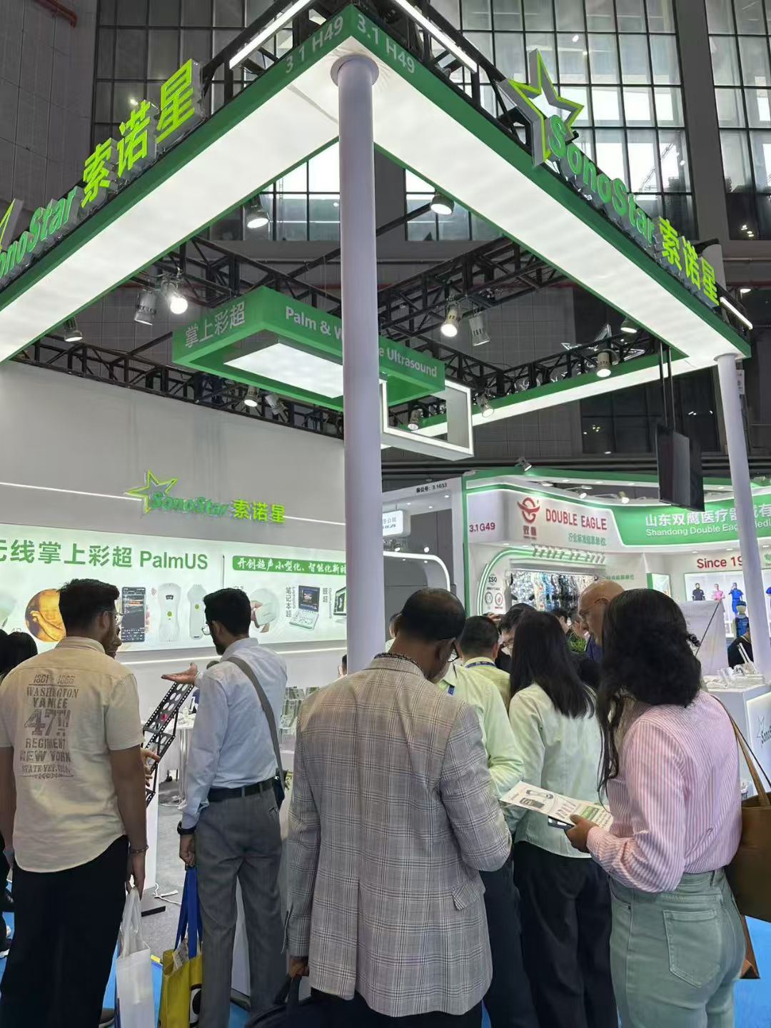 2026春季医博会,索诺星SonoStar的展位还是一如既往的人气爆棚,展位一直挤满了人,大家对4D四维成像、可换电池和可换声头、指套探头等新型号掌超和我司产品品类的丰富都赞叹不已