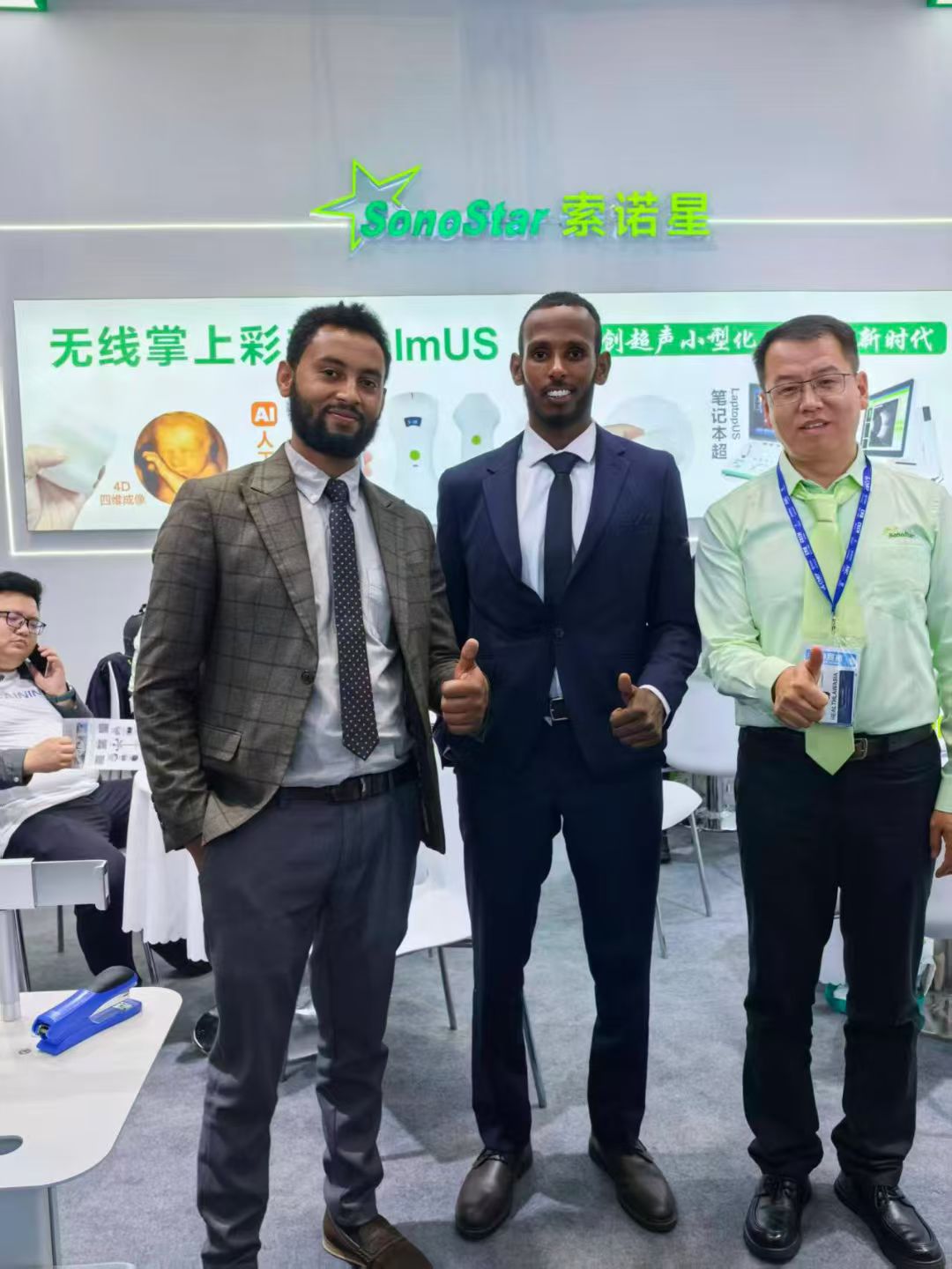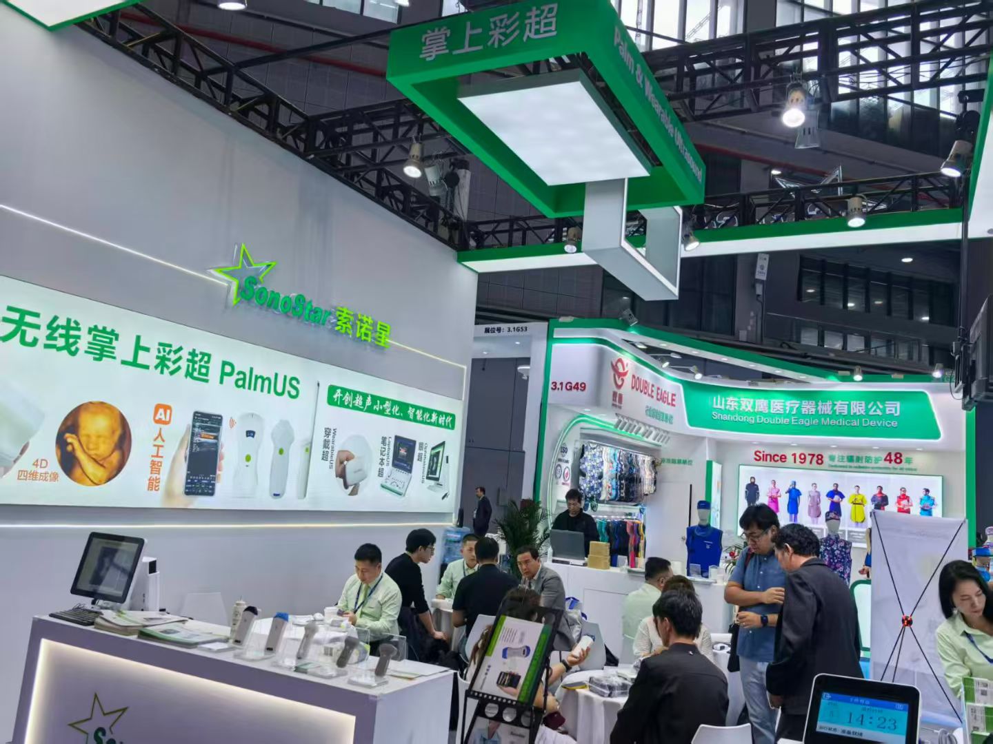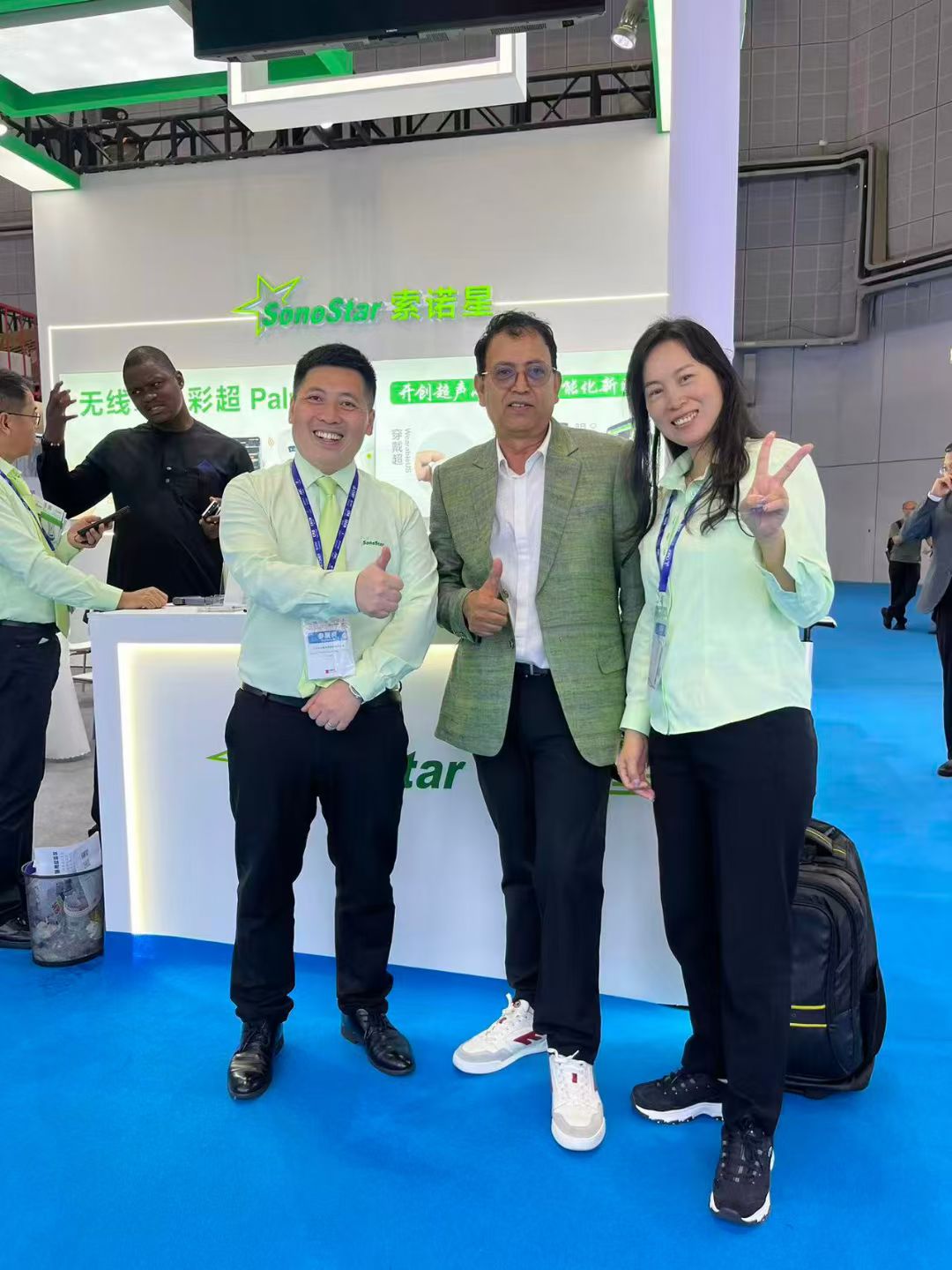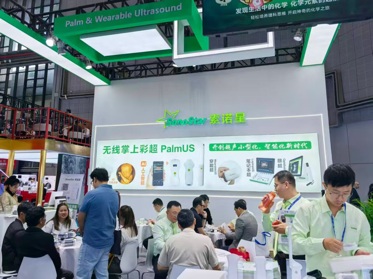 2026春季医博会,索诺星SonoStar的展位还是一如既往的人气爆棚,展位一直挤满了人,大家对4D四维成像、可换电池和可换声头、指套探头等新型号掌超和我司产品品类的丰富都赞叹不已